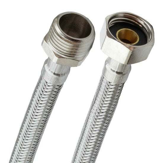 Upgrade your plumbing with our F1/2”*M3/8” stainless steel braided hose. Made in Spain by ESPA FLEX, this durable hose includes brass nuts for added strength. Enjoy a leak-free and long-lasting solution with our top-quality hose.